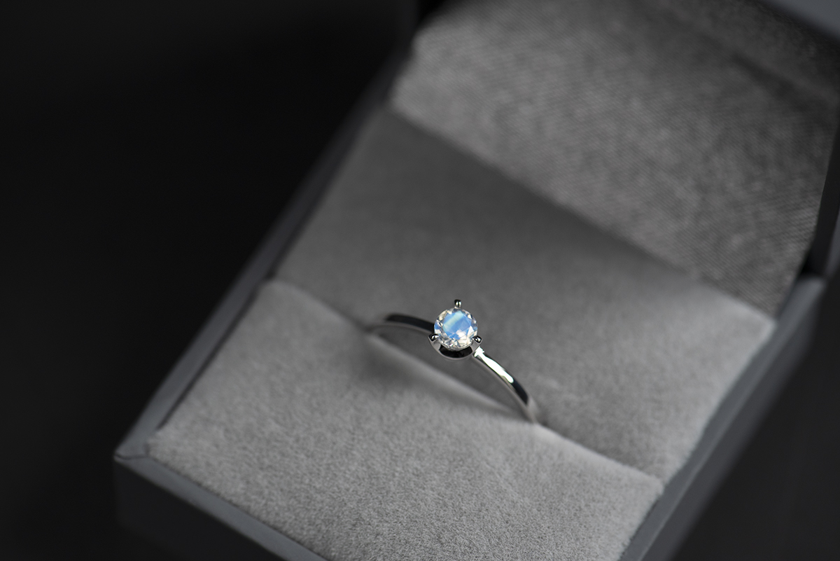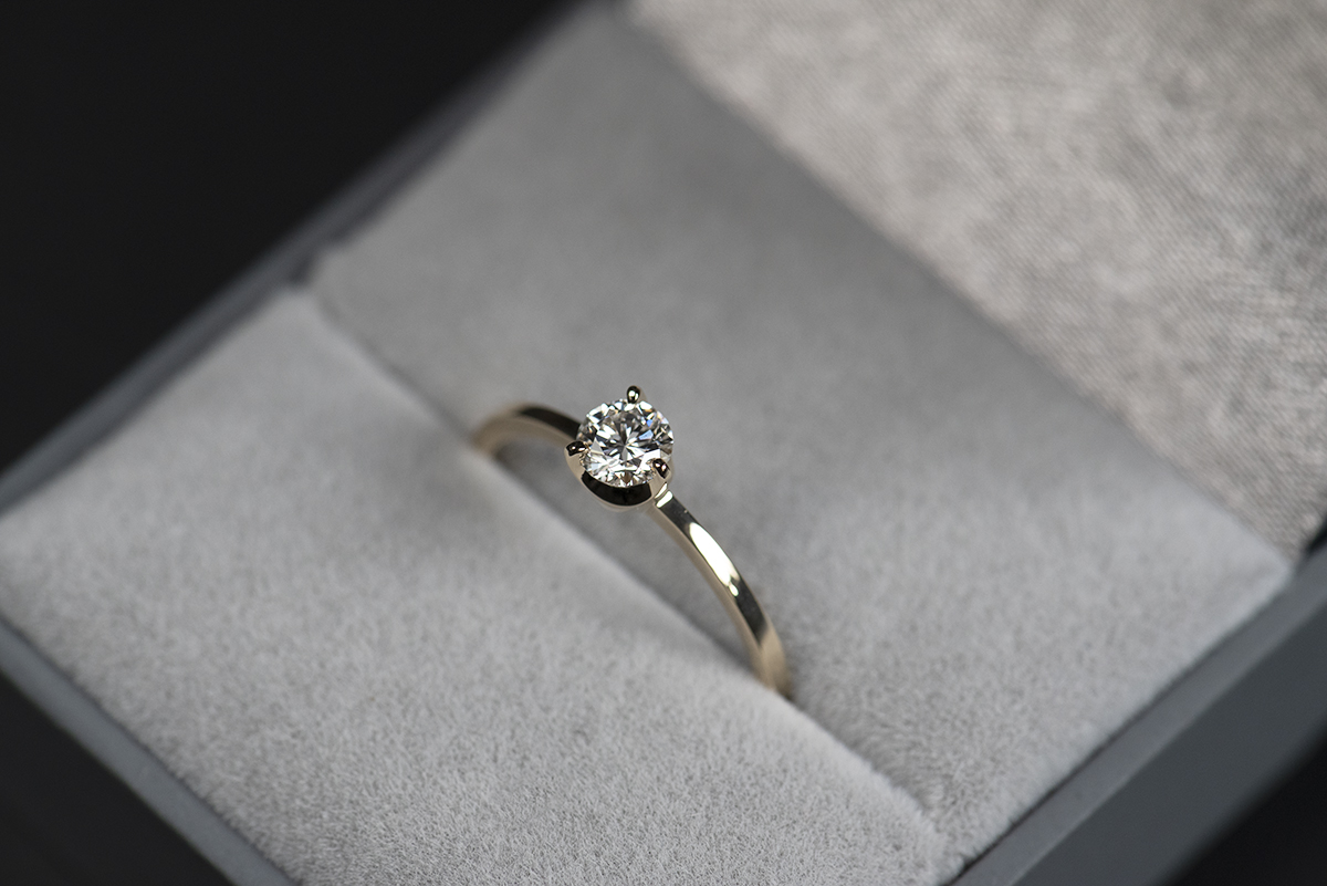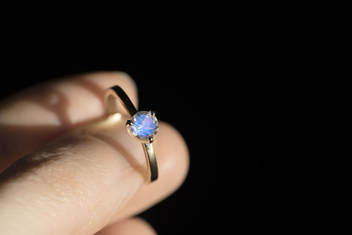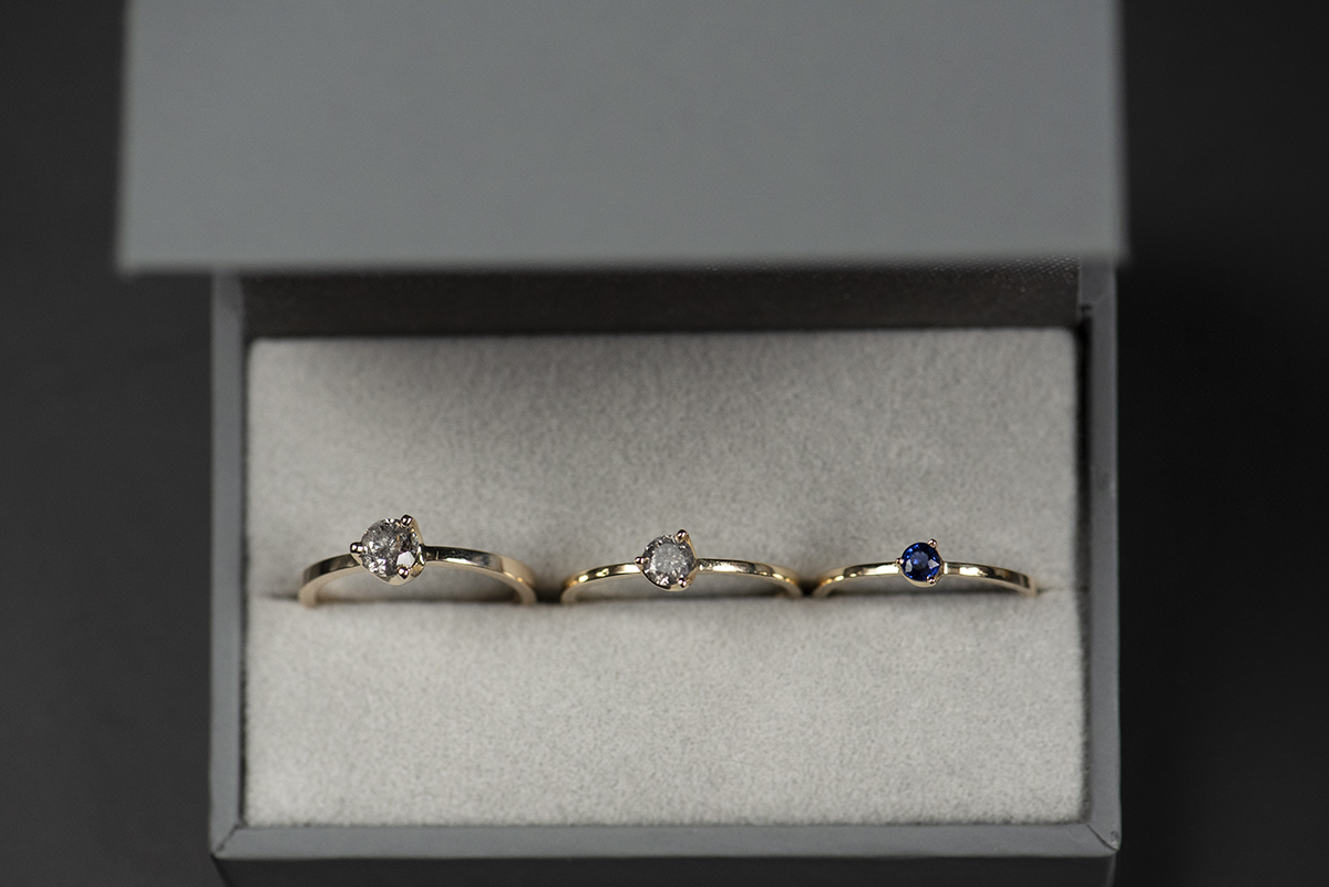 Pierścionki zaręczynowe z Kolekcji Trinity nawiązują do bardzo prostego i klasycznego rozwiązania, czyli prostej oprawki trzymającej w łapach okrągły kamień. Nasz wzór wyróżnia się nieparzystą liczbą łap i asymetrycznym ustawieniem oprawki. I oczywiście wyjątkowymi kamieniami – w pierścionkach zaręczynowych z tej kolekcji oprawiamy głównie kamienie księżycowe, czarne diamenty, diamenty sól i pieprz oraz aleksandryty. Proponujemy też bardziej tradycyjne dla pierścionków zaręczynowych kamienie, czyli brylanty i szafiry. Jak zwykle jesteśmy też otwarci na propozycje i z chęcią umieścimy w nich coś innego. Jeśli więc wśród zaprezentowanych przez nas pierścionków nie ma kamienia, którego szukasz, koniecznie do nas napisz.