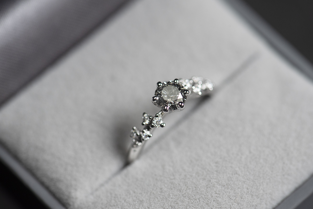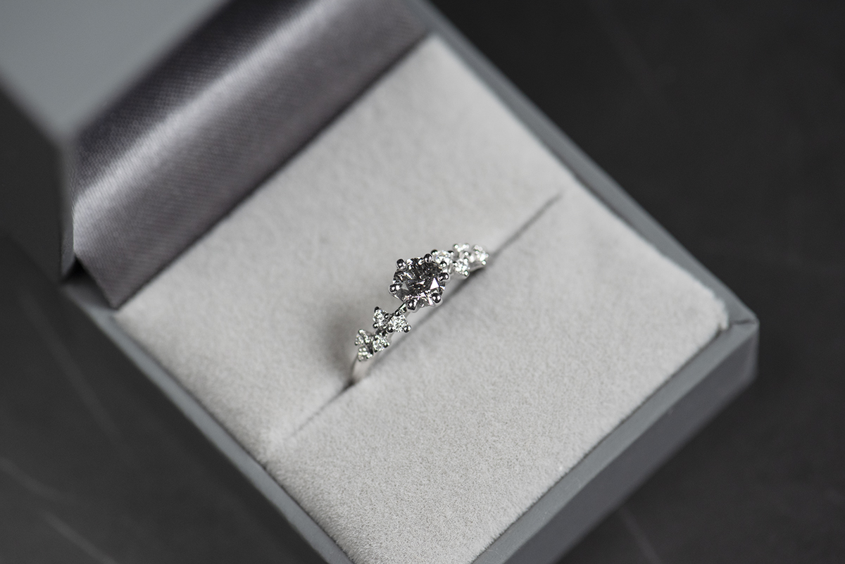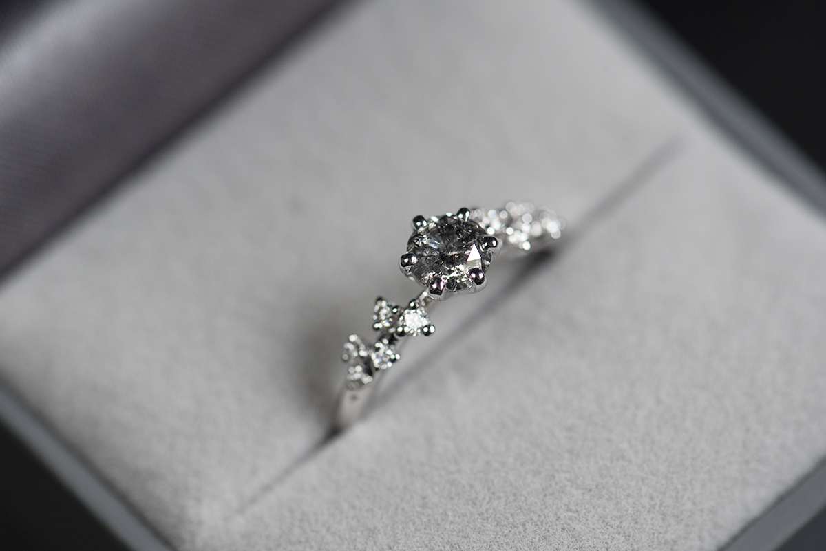 Diamentowi sól i pieprz mogą towarzyszyć diamenty, lub ich wspaniała alternatywa, czyli syntetyczne moissanity. Jak zwykle jesteśmy otwarci na pomysły naszych klientów – zarówno kamień główny jak i boczne możemy zastąpić innymi minerałami i stworzyć spersonalizowane połączenie kolorystyczne (na przykład kombinację diamentów czarnych, białych i sól i pieprz). Możemy też zmienić rozmiar kamienia głównego. Pytania? Zapraszamy do kontaktu!