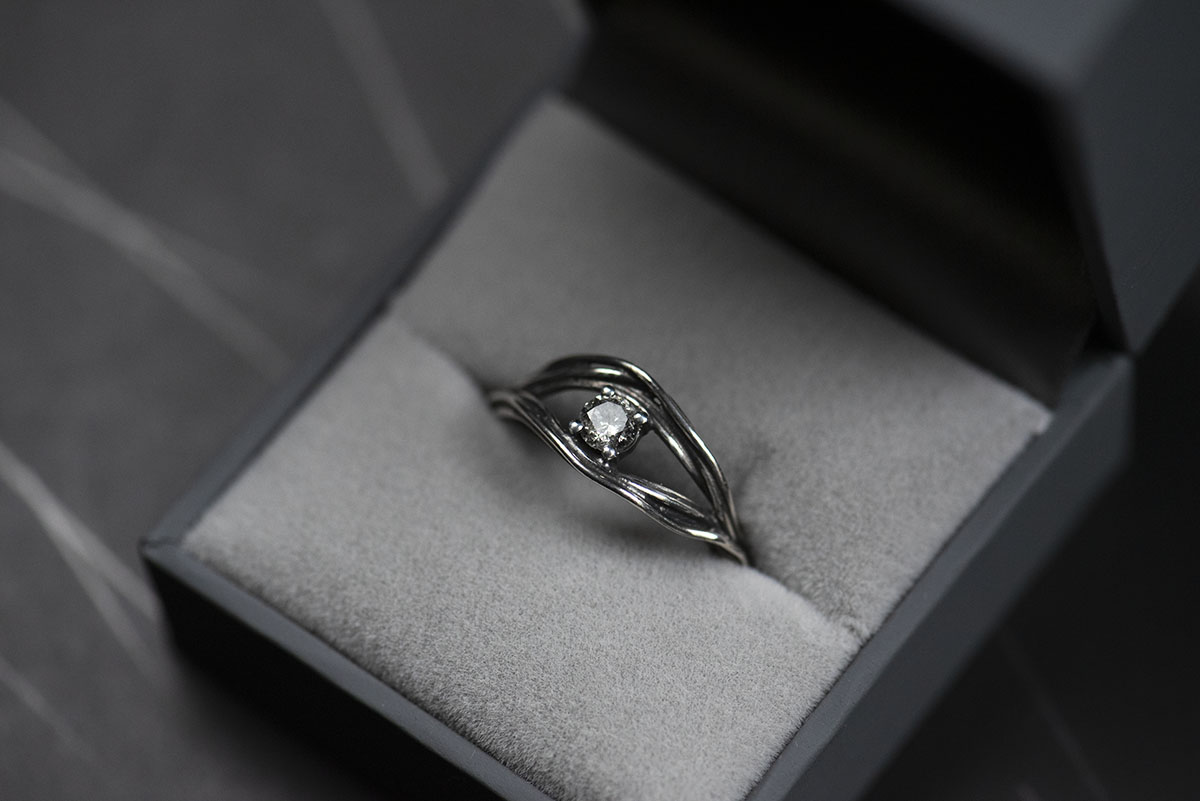 Pierścionek stanowi część Kolekcji Organicznej, którą w całości można obejrzeć w naszej Galerii. Każdy pierścionek jest wykonywany od podstaw ręcznie w momencie złożenia zamówienia – dlatego każdy egzemplarz będzie się delikatnie różnić od przykładu pokazanego na zdjęciach. Dzięki temu każdy zestaw biżuterii z Kolekcji Organicznej będzie wyjątkowy i niepowtarzalny.